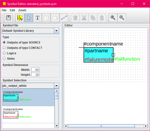 The symbols can be edited and new symbols can be created using the Symbol Editor, see figure 30.