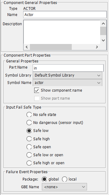 6.4.2.4 Input Fail Safe Type If the selected component part is of type SINK, you can state whether there is some safe side input. See section 6.6.1 for how to use output levels and input fail safe types.