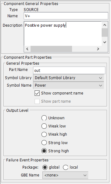 6.4.2.3 Output Level If the selected component part is of type SOURCE, the output level has to be selected. See section 6.6.1 for how to use output levels and input fail safe types.