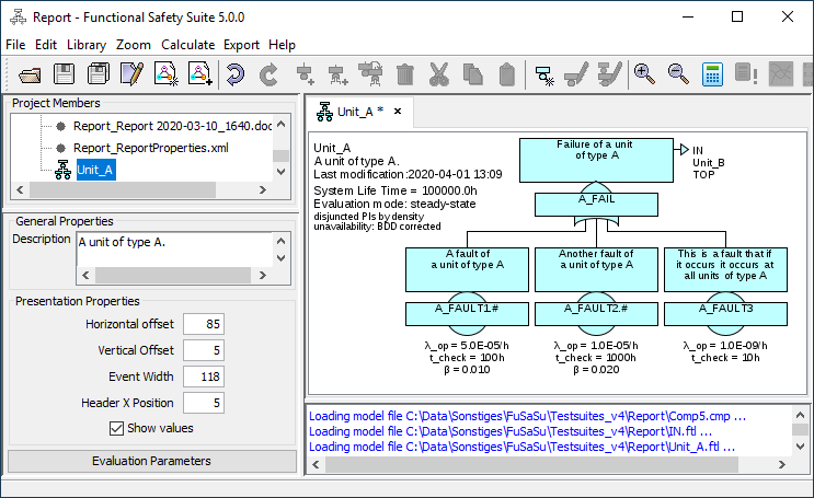 For qualitative fault trees a ‘second text line’ is displayed instead of the numeric values in the name field of each event. It doesn’t get lost when changing the project type in the project properties dialog to quantitative evaluation. Since this text is specific to each basic event, it is a property of the basic event, not the underlying generic basic event. Therefore it is stored in the fault tree file.