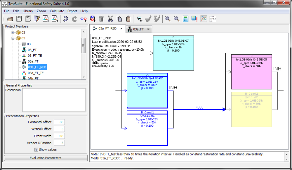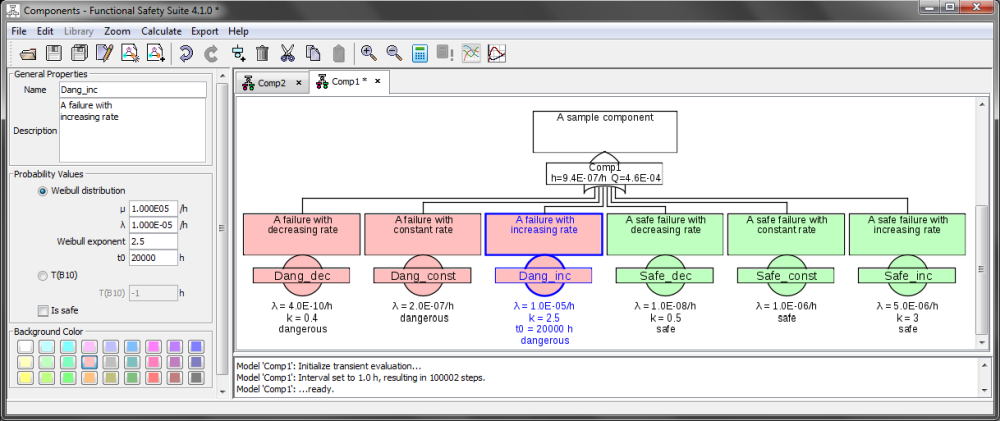 • Modeling, simulation and graphical analysis of complex components with different failure modes (safe and unsafe) with time variant rates, incl. detailed calculus of the characteristic values (e.g. b10, b10_d, MTBF, MTBF_d etc.).