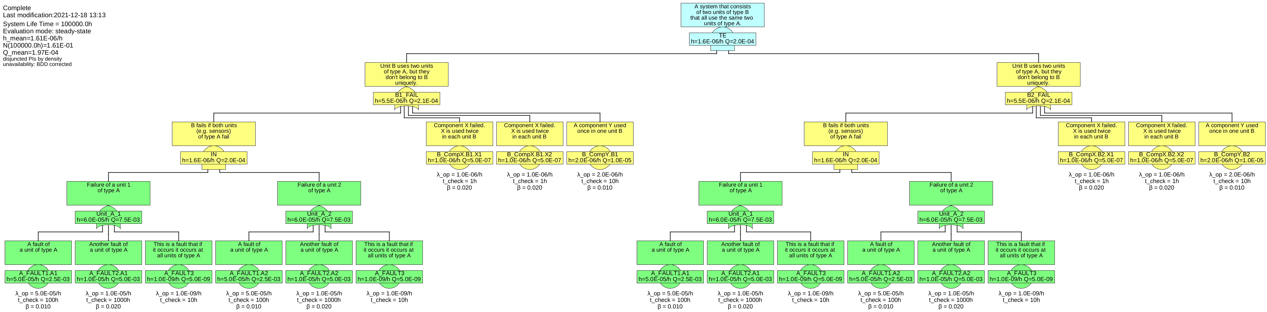 • A unit of type B fails, when both units A1 and A2 fail, or any of its own components X1, X2 or Y.