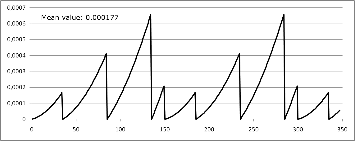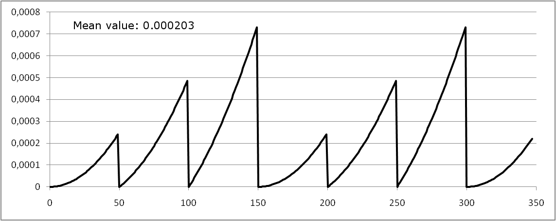 The number of simulations nsim is calculated as follows, depending on the calculation value, the tolerable value, the system lifetime T and the confidence factor c: