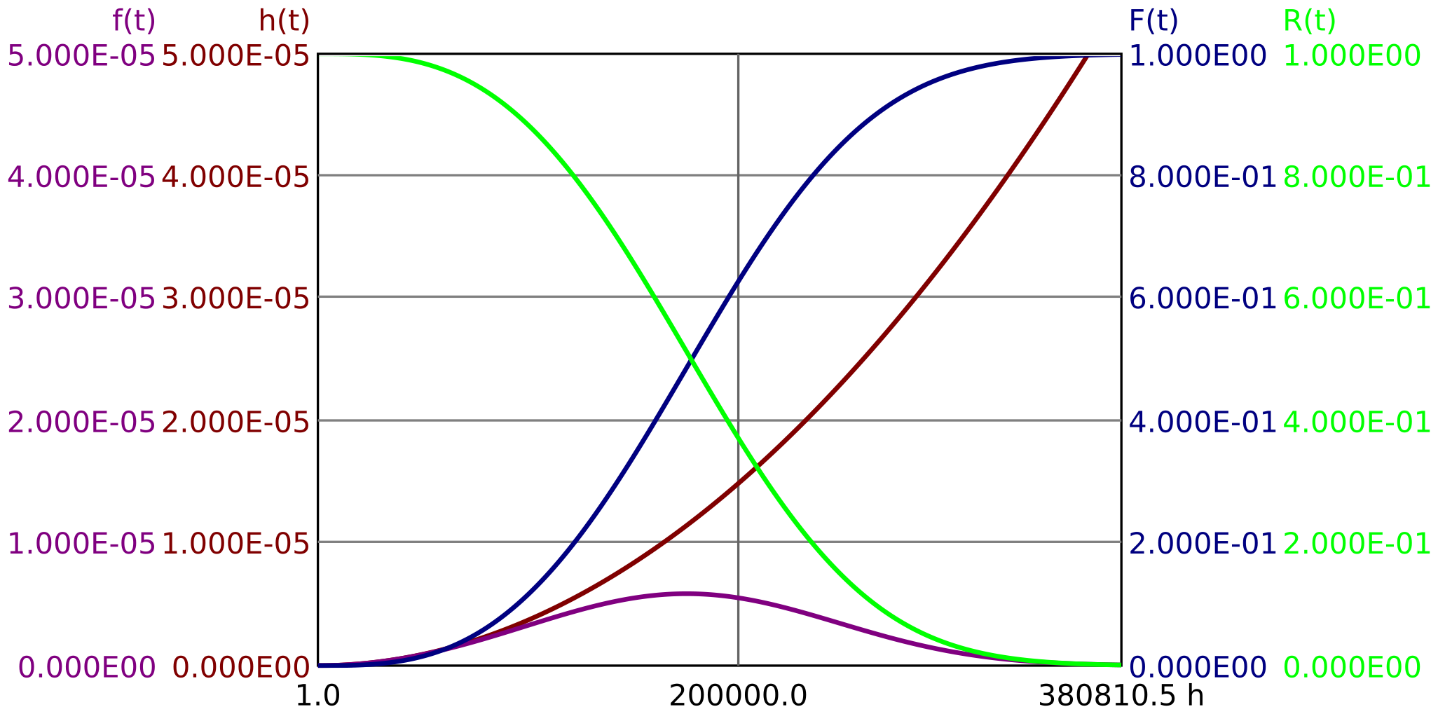 unreliability \(F(t)\), failure rate \(h(t)\) and failure density \(f(t)\) is shown in Figure 3.