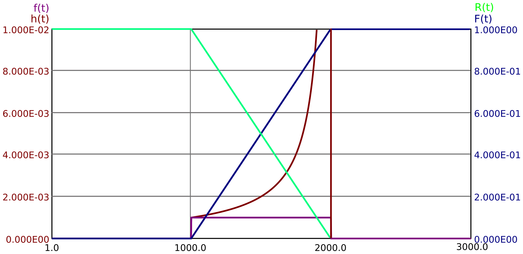 R(t)=\begin{cases} 1 & \text {fÃijr } t<t_1 \\ \dfrac {t_2-t}{t_2-t_1} & \text {fÃijr } t_1 \leq t < t_2 \\ 0 & \text {fÃijr } t \geq t_2 \end {cases}